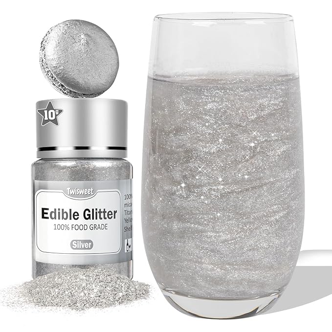 - 【Vibrant Colors & Party Favorite】: Our silver edible glitter delivers a dazzling metallic or pearl finish that instantly elevates desserts and beverages—from wedding cakes to lattes and holiday treats! Ultra-fine powder blends smoothly for a pro-level shimmer without clumping, perfect for bakers styling glitter cupcakes, Starbucks-inspired drinks, cocktail rimming, or DIY desserts.