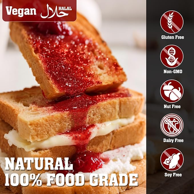 - 【Vibrant Colors & Party Favorite】: Our red edible glitter delivers a dazzling metallic or pearl finish that instantly elevates desserts and beverages—from wedding cakes to lattes and holiday treats! Ultra-fine powder blends smoothly for a pro-level shimmer without clumping, perfect for bakers styling glitter cupcakes, Starbucks-inspired drinks, cocktail rimming, or DIY desserts.
