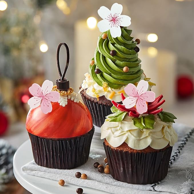 - 【Reassuring material】 60 high-quality wafer paper edible cupcake toppers with delicate cherry blossom designs. These flower cupcake toppers are flavorless and safe for decoration.