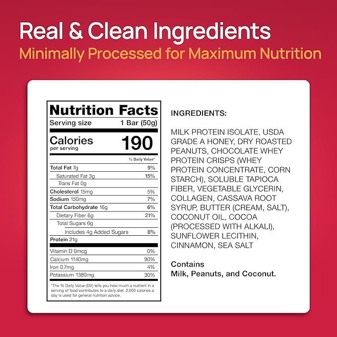- Real Honey & Peanut Butter: These low sugar protein bars, made with USDA Grade A honey and natural peanut butter, deliver clean protein without artificial additives.