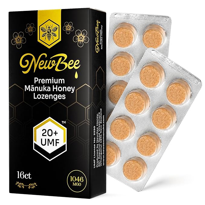 Manuka Honey Lozenges, 16 Count Made W/UMF 20+, MGO 1046 New Zealand Manuka Honey, UMF Certified, Monofloral, Traceable from Hive to Hand