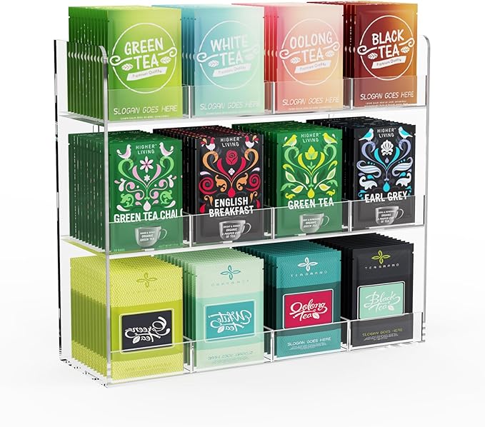 - 【HIGH CAPACITY】Laumffon acrylic tea bag storage features a modern design style and a large capacity. It is one of the few tea bag organizers with a modern design. The storage unit has more compartments, with each compartment capable of holding up to tea bags, allowing for more tea bags.