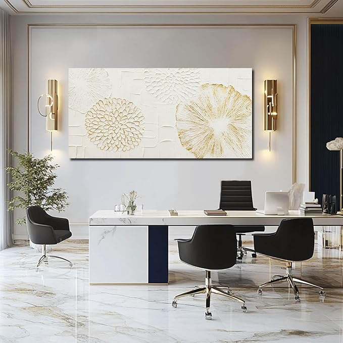 VAYIMDH White and Gold Wall Decorations Flower Wall Paintings Neutral Wall Art 29"x58" Over The Bed Wall Decor for Bedroom Kitchen Pictures