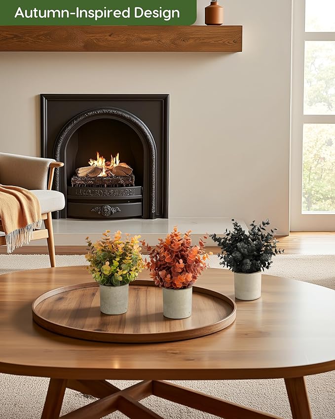 - Warm Autumn Aesthetic: Featuring rich orange tones, these faux eucalyptus plants bring cozy fall vibes into your space. With lifelike leaf texture and realistic color gradients, our artificial potted plant closely mimics the beauty of real plants—making it a perfect accent for autumn and seasonal decor.