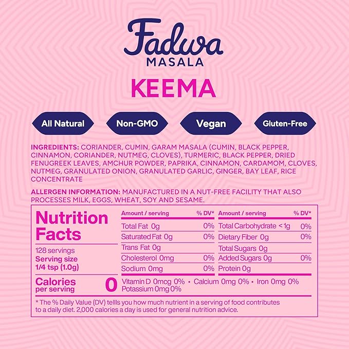 - Customizable, Versatile Flavor: This bold Keema Masala is crafted without salt or red chili, so you can add Fadwa Pakistani Pink Salt and Red Chili to suit your taste.