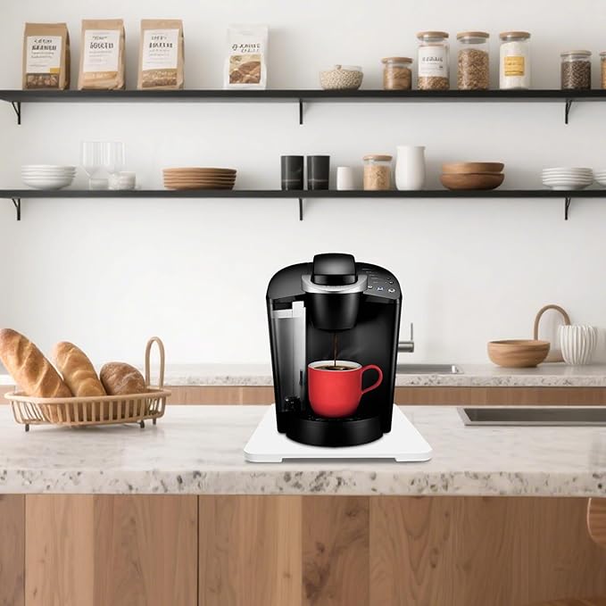 - ELEGANTLY ORGANIZE: With the coffee matt for counter, you can reorganize your kitchen accessories in style without scratching your countertop or kitchen surfaces. Whether you want to easily access your coffeemaker air fryer from under the cabinet, or you need more counter space to prepare a large meal, coffee maker mat for countertops lets you quickly and easily move appliances.