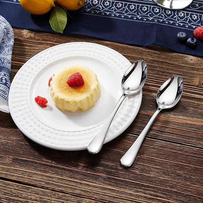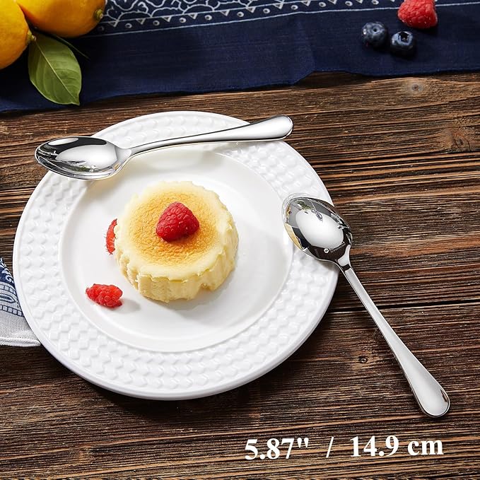 - 💎RUE‑TO‑SIZE — Each small spoons is 5.87" long × 1.26" wide (14.9 × 3.2 cm), measured tip‑to‑tail and at the bowl’s widest point. Sleek, Timeless Design: Designed with a clean silhouette and brilliant mirror polish, these spoons bring a touch of refinement to weeknight dinners, family brunches, or formal gatherings.