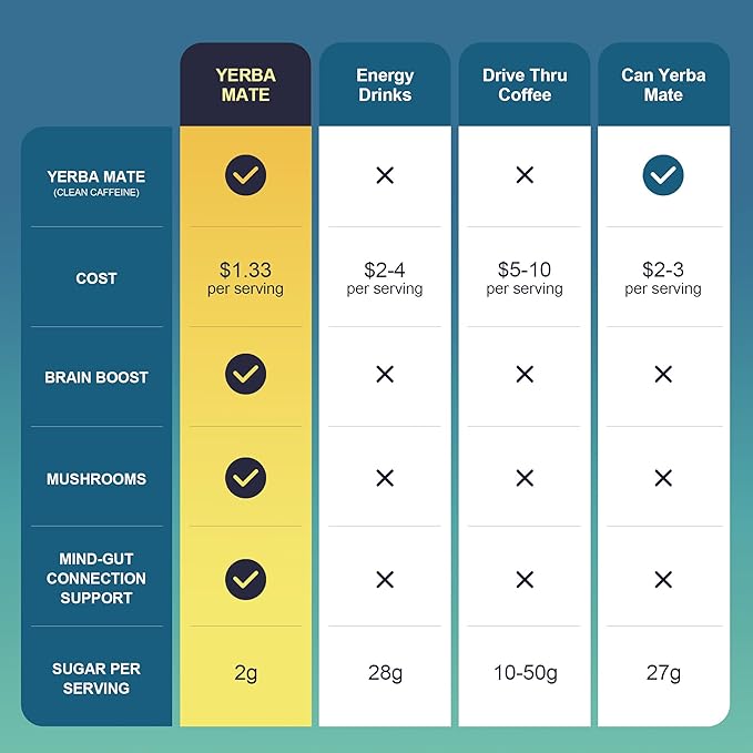 - A PERFECT COFFEE ALTERNATIVE – Instant dissolving powder designed for convenient daily use. Lions mane, caffeine and l-theanine to help your brain run smoothly and keep you feeling clear and focused. Whether you're studying, working, or staying active, our yerba mate tea is a great companion for a productive day.