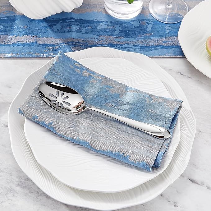 KEAWELL Premium Astra 4-Piece 9 inch Spoon Set ??Mirror-Finished 18/10 Stainless Steel with Diamond-Faceted Handles Dishwasher Safe for Modern Dining (4, Serving Spoons and Slotted Spoons)