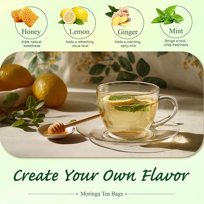 - 【100% Pure Moringa Leaves】Moringa tea bags are made from hand-selected, naturally dried moringa leaves with no additives, fillers, or caffeine. A clean, plant-based infusion for daily wellness