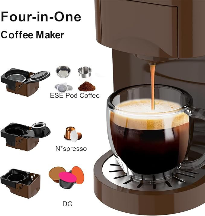 - 【4-in-1 Espresso Machine】The KOTLIE Espresso Machine comes with 4 kinds of pods that fits for K-Cup capsule/Nes*p Original/ground coffee/44mm ESE. It is also compatible with Dolc* G*sto Capsule/A MODO MIO capsule/Lav*azza Blue capsule/Caffitaly capsule (Separate KOTLIE PODS purchase required).