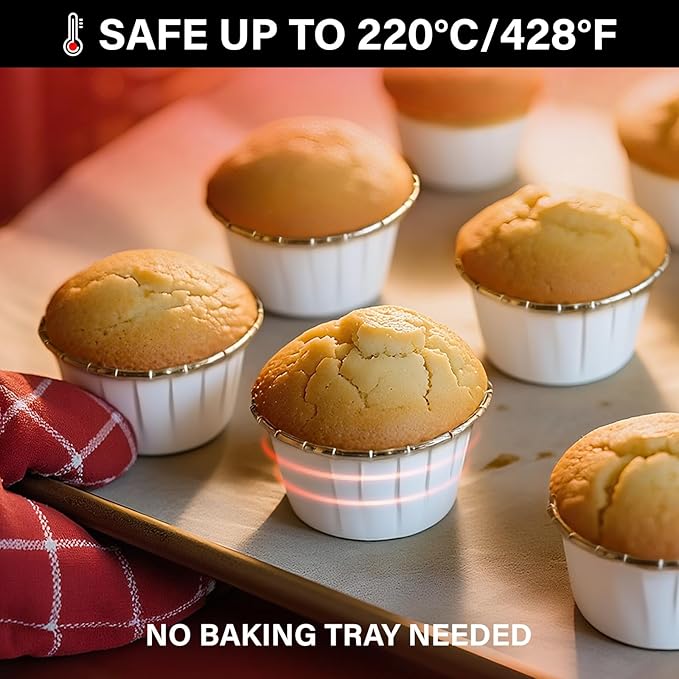- 【No Baking tray needed】-These muffin cups are made of premium quality aluminum foil that make these strong and sturdy. Put them into the oven and bake them directly. No Baking tray needed. Please also note that these muffin cups do not need to be added with any molds, otherwise it will be like adding a fire source and it will easily stick to the bottom of the pan.
