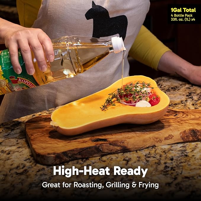 Refined Sunflower Oil, 1 Gal (4 x 1L), Premium Imported Ukrainian Cooking Oil, NON GMO, Halal & Kosher Certified, Neutral Oil for Frying & Salad