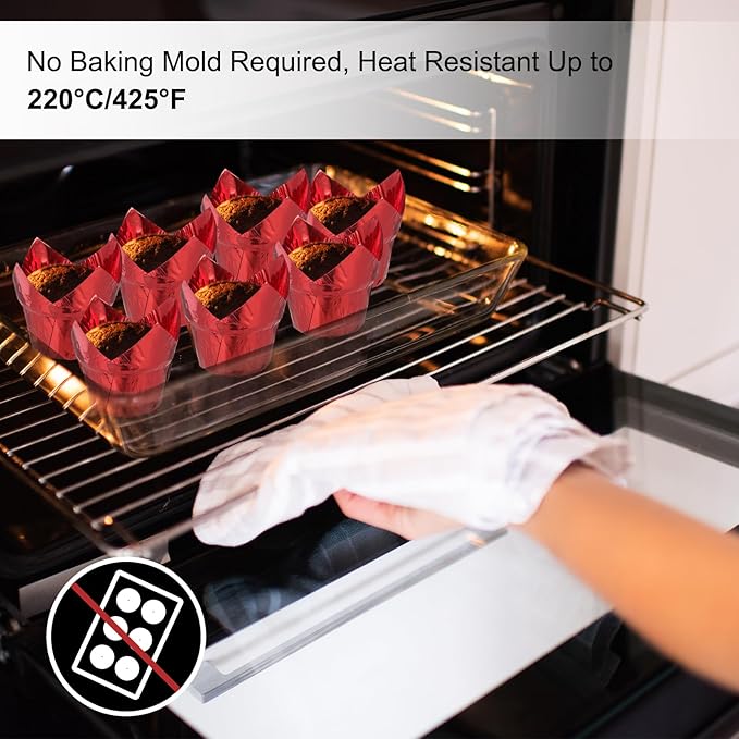- Elegant Tulip Design: This unique tulip baking cup combined with aluminum foil has a sophisticated look and can decorate your tabletop and party, adding bright colors.