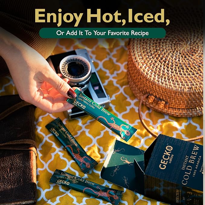 Gecko Coffee Instant Cold Brew, Craft Instant Coffee Sticks, 100% Arabica Medium-Dark Roast, Coffee Singles Packets, Smooth & Rich, Hot or Iced, Sugar-Free, Eco-Friendly, 25 Count