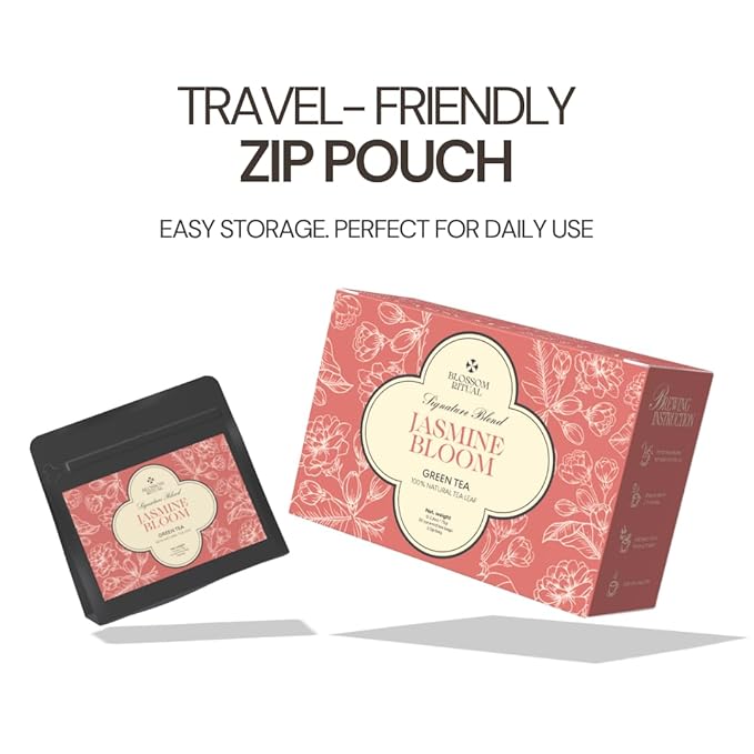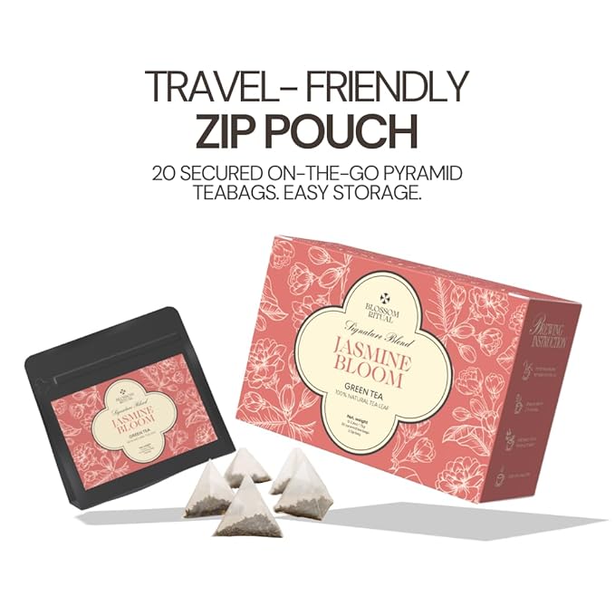 BLOSSOM RITUAL Jasmine Bloom – Floral Green Tea Loose Leaf – 20 Natural Based Pyramid Bags – Serve Upto 60 cups – Jasmine Petal Infusion – Stress Relief & Rich Antioxidants | 2.65oz