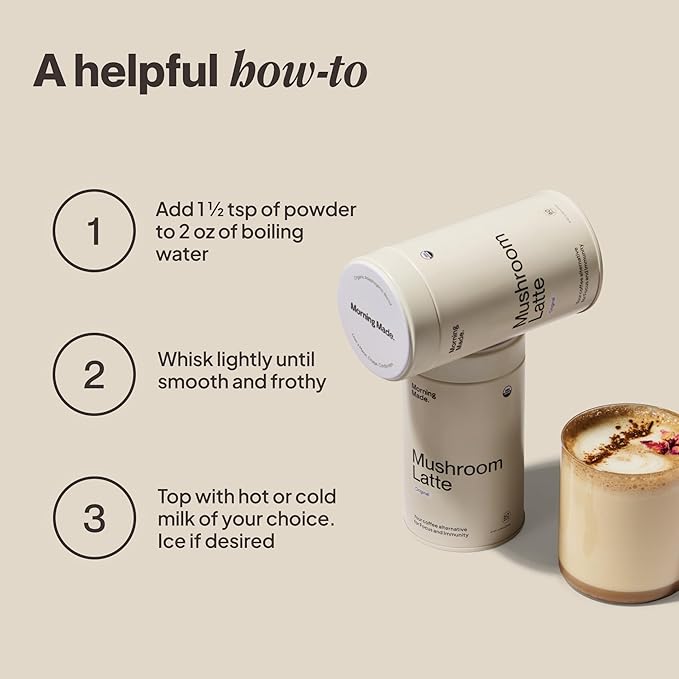 Morning Made Original Mushroom Latte Powder Mix | Organic Lion’s Mane, Chaga & Cordyceps Adaptogenic Blend, Caffeine-Free Coffee Alternative | Sweetened, Vegan, Gluten-Free, Low Sugar | 10.6oz (60 Serves)