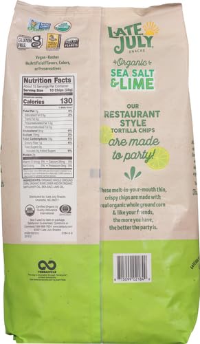 - Includes one (1) 14.75-ounce bag of Late July sea salt & lime organic tortilla chips