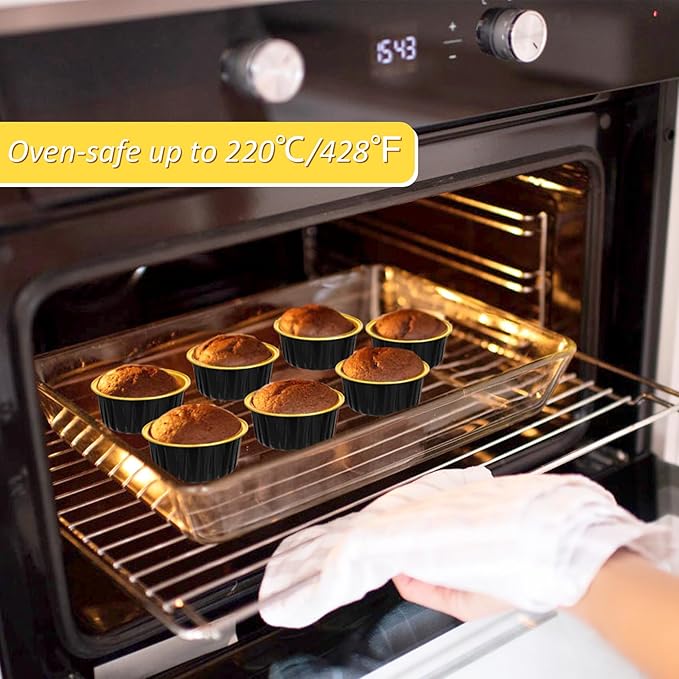 - Material safety: Our disposable cupcake tins with lids are made of sturdy food-grade aluminum foil, slightly waterproof and oil proof. It can withstand high temperature, and the heating speed is fast. (NOTE: The clear lids are not heat resistant!)