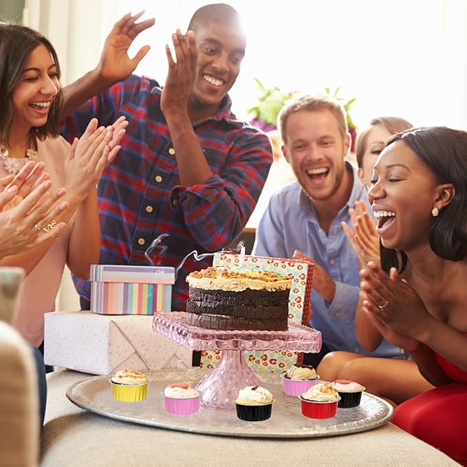 - Material safety: Our disposable cupcake tins with lids are made of sturdy food-grade aluminum foil, slightly waterproof and oil proof. It can withstand high temperature, and the heating speed is fast. (NOTE: The clear lids are not heat resistant!)