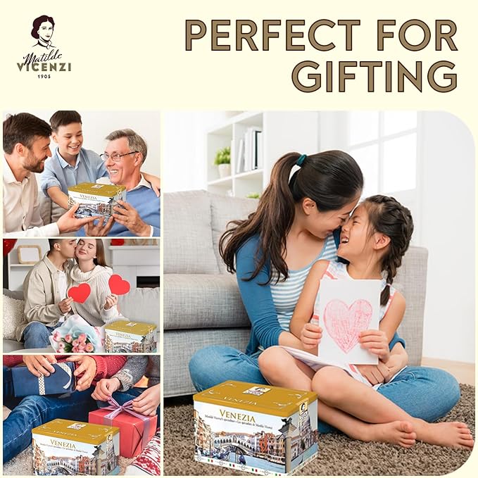- Venetian Themed Gift - This 32.5 oz (920g) gift tin is elegantly decorated with scenic views of Venice, making it a perfect and charming gift or special occasions such as corporate events, Hanukkah, Christmas, Holidays, birthdays, Mother's Day, Father's Day, or just because gifts.