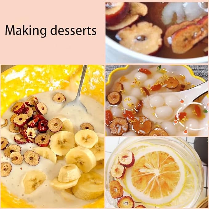 - Our red dates are processed Hand-selected jujubes are sweet and delicious. It can be eaten as a snack or fruit, can also be used to make soup, added to pastries and desserts, or used with goji astragalus for better nourishing effect.