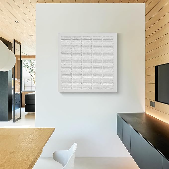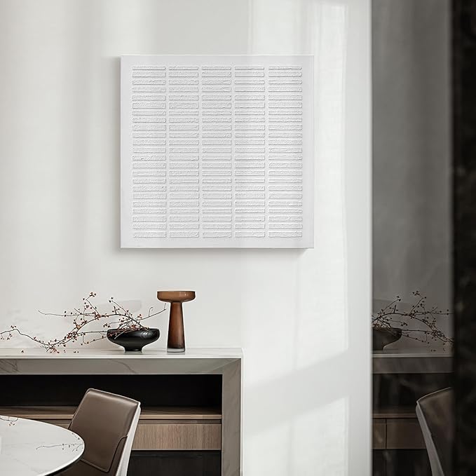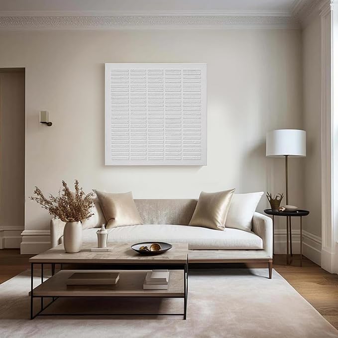 Artaanchuil White Square Textured Wall Art - 32x32 inch Hand-Painted Oil Painting Modern Abstract Minimalist Artwork for Living Room Bedroom Wall Decoration