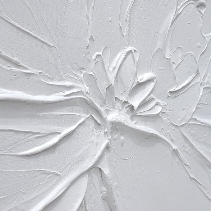 Artaanchuil Hand Painted White Flower Texture Wall Art - 28x40 Inch Beige Canvas Abstract Oil Painting Vertical Modern Artwork for Living Room Wall Decoration