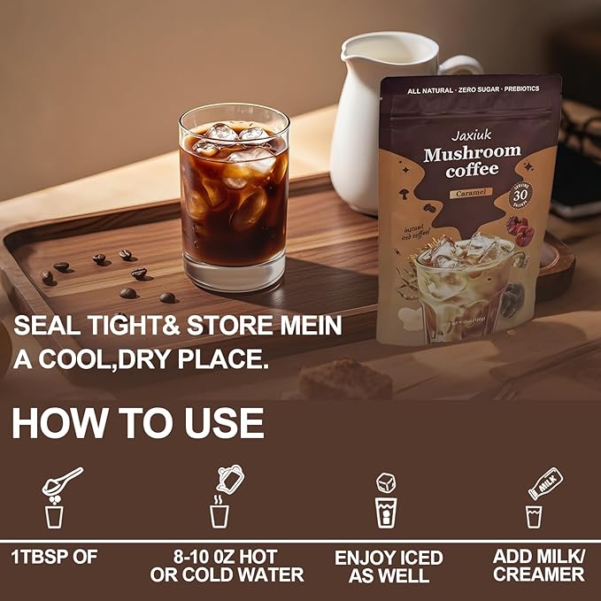 - 🍄Unique formula: Combines premium Arabica coffee beans with six adaptogenic mushrooms (Cordyceps, Reishi, Lion's Mane, etc.), plus MCT oil and coconut milk for rich flavor and health benefits.