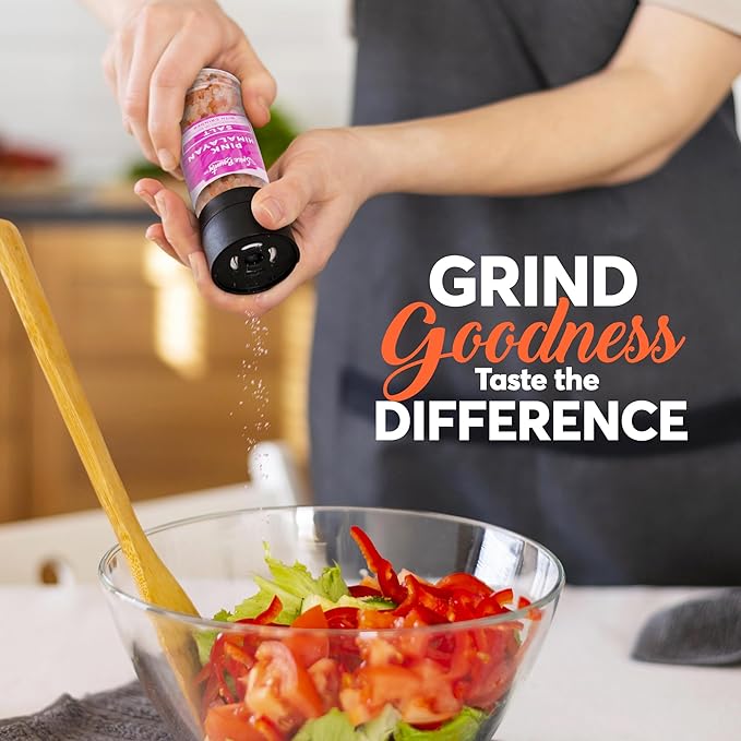 - NATURAL & PURE INGREDIENTS – Contains mineral‑rich Himalayan pink salt and whole black peppercorns; no preservatives, additives or anti‑caking agents.
