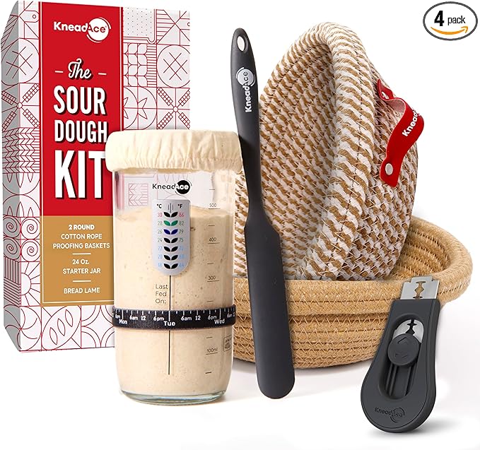 Sourdough Starter Kit (24oz Jar, 2xRound Baskets, Gray Bread Lame)