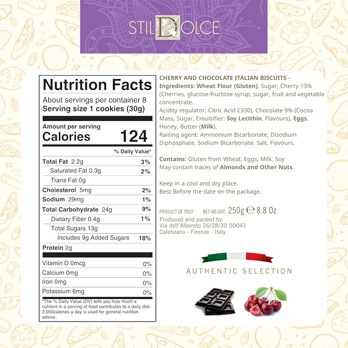 - AUTHENTIC CANTUCCINI BISCOTTI FROM ITALY– Stildolce Chocolate and Cherry Biscotti Cookies are baked in Tuscany, Italy, following traditional recipes for a genuine Italian taste. Experience the delightful flavor and classic crunch of these premium biscotti Italian cookies, perfect for anyone who loves authentic Italian treats.