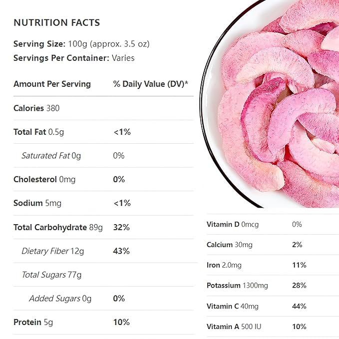 - Nutrient-Dense Snacking Each serving delivers: Equivalent nutrition to fresh peaches Natural fiber & vitamins Approved crunch Perfect alternative to snacks