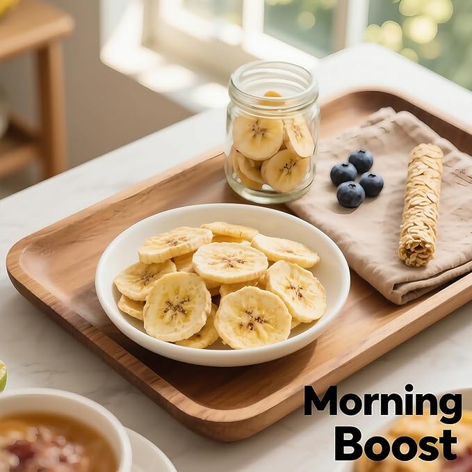 - 100% Freeze-Dried Bananas Enjoy the pure taste of ripe bananas with our freeze dried fruit - no additives, just crispy banana chips unsweetened that deliver: Authentic banana flavor Preserved nutrients & fiber Satisfying crunchy texture Perfect alternative to dried banana chips