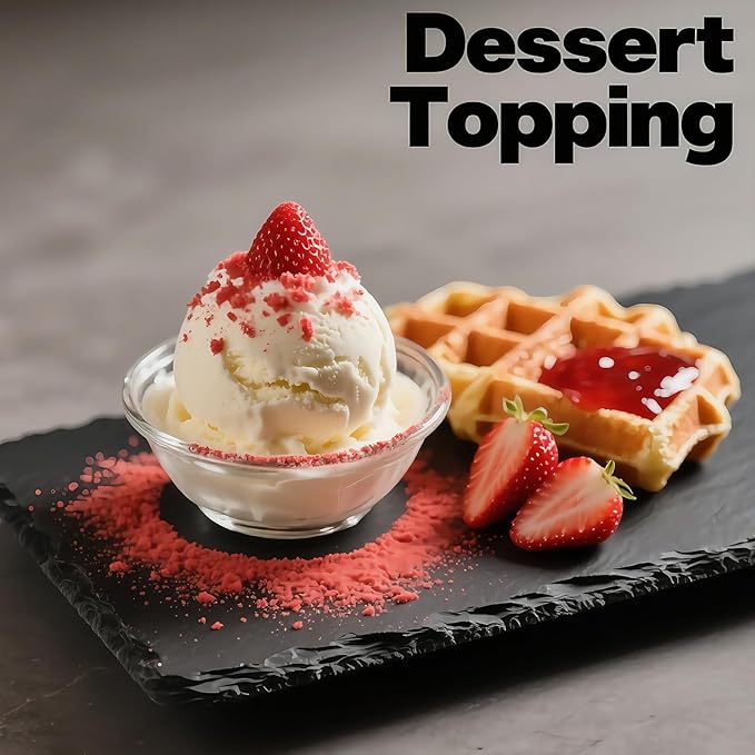 - Endless Culinary Possibilities This versatile freeze dried strawberry powder perfects: Smoothies & protein shakes Baking (cakes, cookies, frostings) Breakfast (yogurt, oatmeal, pancakes) Beverages (lemonades, cocktails, teas) Dessert toppings (ice cream, cheesecakes)