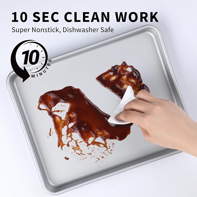 - ONE VERSATILE SET: This 3-piece rectangle baking pan set get perfect results with 3 essential depths: Small (8.7"x6.7"x1") for crisp cookies, Medium (11"x9"x1") for moist sheet cakes, and Large pan (13"x10.5"x1") for juicy chicken. From crispy to juicy—one set does it all!
