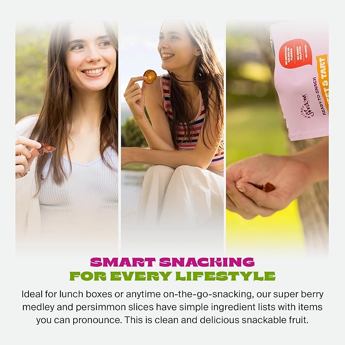 - Wholesome Duo of Bold Flavors: Enjoy a wholesome combination of two delicious dried fruits. Packaged separately, this variety pack includes our air-dried Super Berry Medley and our Persimmon Slices. This snack duo delivers bold flavor and real fruit in full-size individual packs.