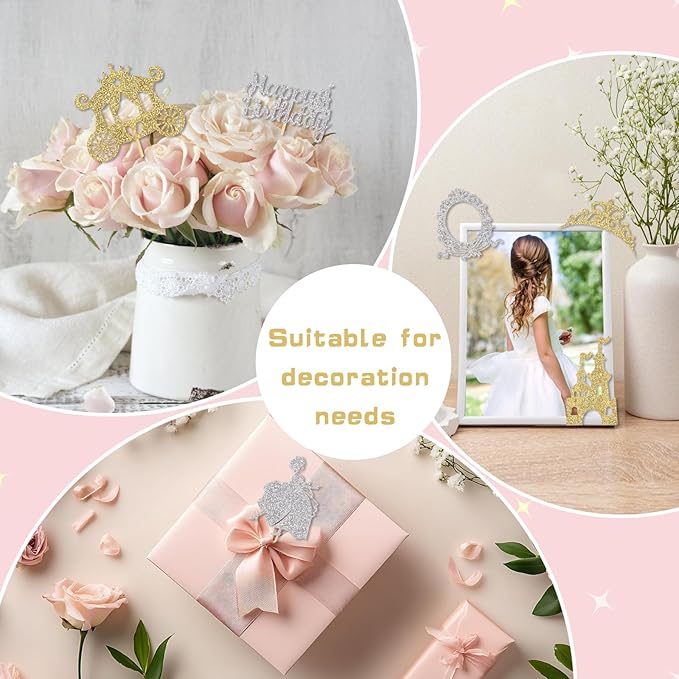 - Princess Theme Design: These glitter castle princess cupcake toppers are so cute and good for princess crown theme party, baby shower theme party,kids birthday party cupcake decorations. They can make your cupcake more attractive and bring the fun to your party