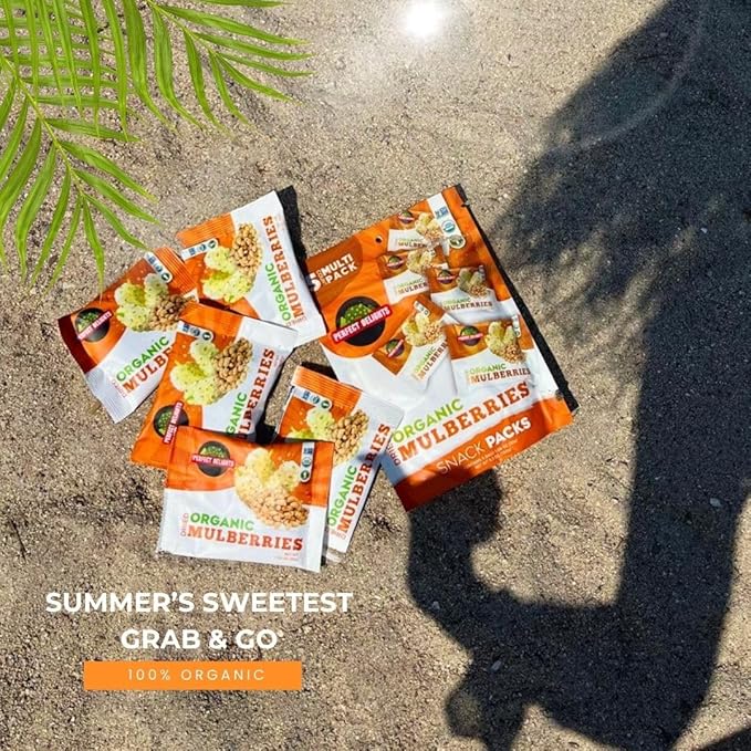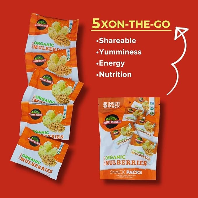 Perfect Delights Snack Pack Mulberries, Sun-Dried Mulberries, On-the-Go Vegan, Healthy Snack, Easy-to-Carry Dried Mulberries, Perfect for Kids & Adults - 5 Pack