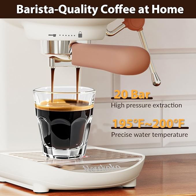 - Professional Performance: 20 bar high pump pressure extracts the coffee's oils and flavors better, creates a richer, smoother shot of espresso