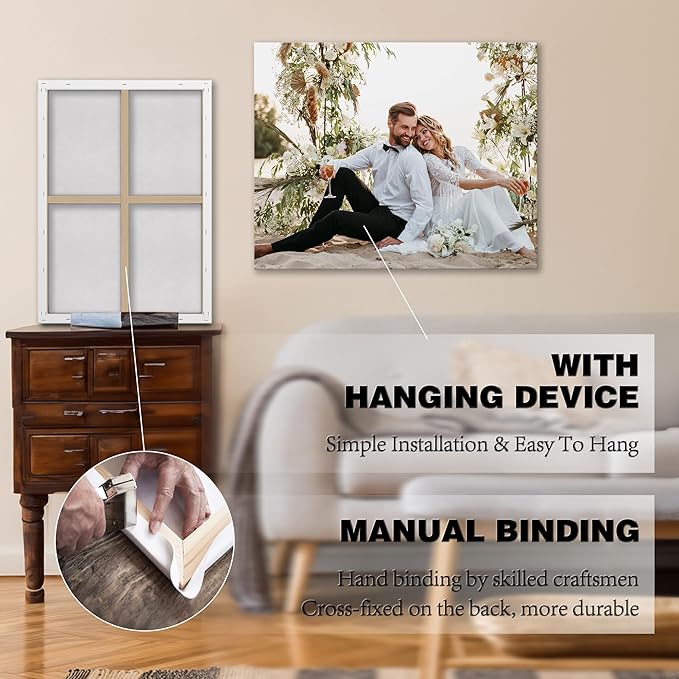 - PHOTO PRINT ON CANVAS: Turn your favorite photos into stunning custom canvas wall art. Whether it’s a family portrait, a pet portraits, a wedding memory, or a travel memory, this personalized gift adds a heartfelt touch to any home decor.