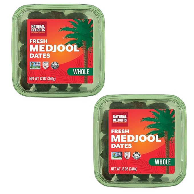 Natural Delights Medjool Dates Whole - Non-GMO Verified Fruit, Good Source of Fiber & Potassium, Naturally Sweet, Snack for On-the-Go, Large & Plump Dates - 12 oz Tub (Pack of 2)