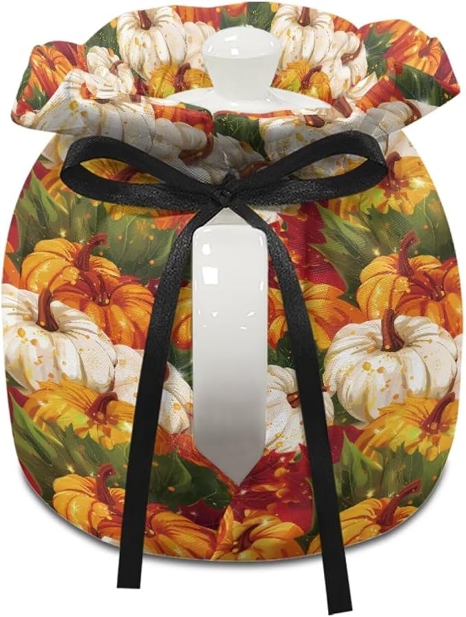 Pumpkin Tea Cozy for Teapot Insulated for Halloween Day Dust Proof Tea Pot Cozy for Keeping Warm,Resuable Teapot Insulation Cover with Drawstring,Soft & Washable