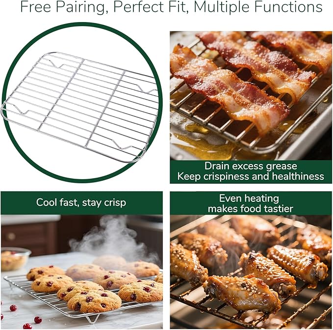 18/0 Stainless Steel Baking Sheet with Cooling Rack, 10.4 Inch Oven-Safe Non-Toxic Cookie Sheets for Baking, Coating Free & Rust Resistant for Healthy Family Baking, Easy to Clean, Heavy Duty