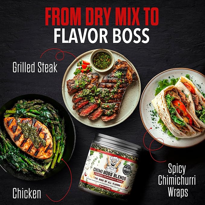 Chimi Boss Blends Infierno Chimichurri Dry Seasoning, 4 oz – Spicy Argentinian Herb & Chili Rub with Parsley, Garlic & Oregano – All Natural Dry Mix for Seasoning or DIY Sauce – Made in USA