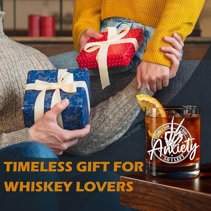 kunlisa Funny Anxiety Mental Health Whiskey Glasses, Anxiety Relief Gifts, Sarcastic Gothic Skeleton Psychology 10 oz Drinking Rocks Glasses for Women Men Whisky Cocktail Scotch Bourbon Liquor