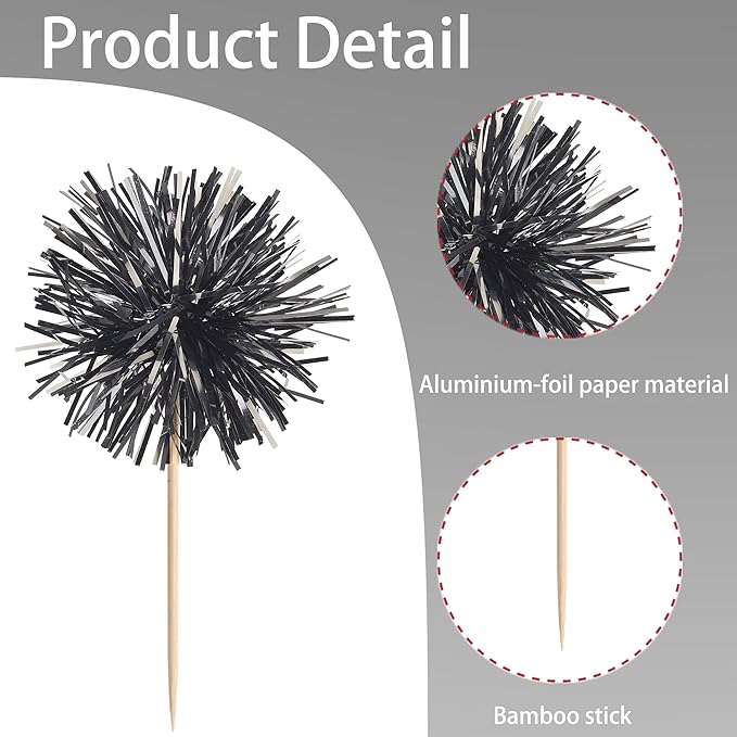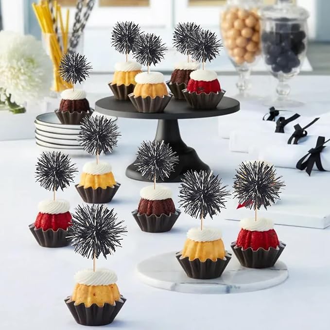 40 PCS Black Foil Firework Cupcake Toppers Sparkle Tinsel Cupcakae Picks Sparkler Fireworks Party Decorations Cocktail Fruit Toothpick for Birthday Wedding Graduation Party Decorations Supplies