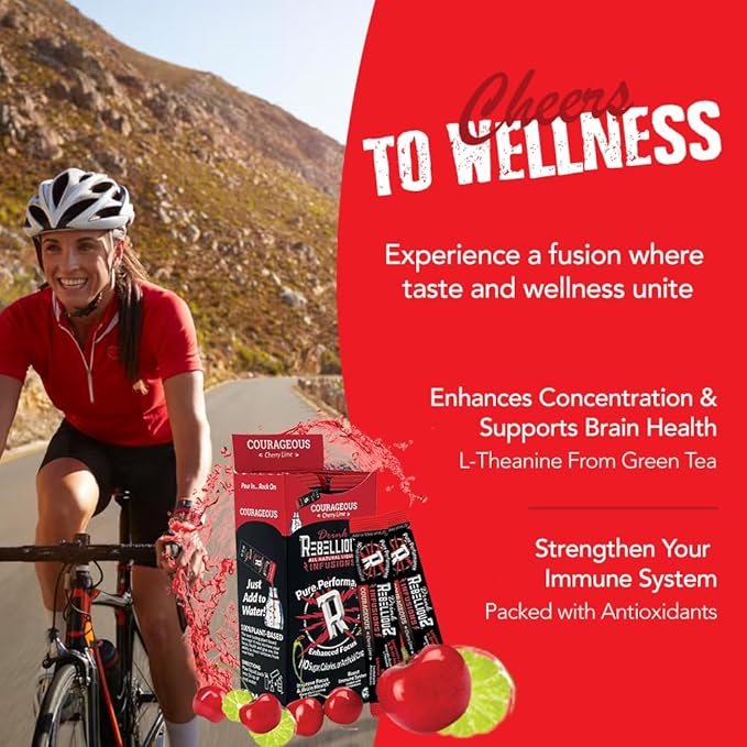 Rebellious Courageous Cherry Lime Organic Drink Mix ??Zero Calorie Energy Drink Mix | Monk Fruit & Green Tea Extract | L-Theanine + Natural Caffeine | 100% Plant-Based | Pack of 10 | Keto,Gluten-Free