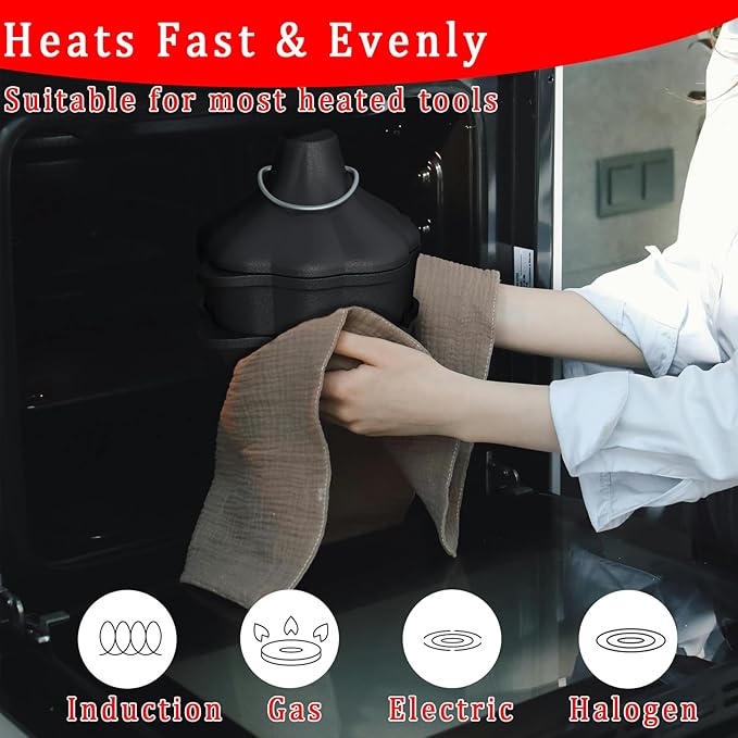 - ⚙️【Heavy-Duty Cast Iron & Even Heat Distribution】 Pre-seasoned cast iron garlic roaster ensures rapid heating and retention, ideal for cast iron potato roaster, tomato sauce simmering, or chocolate melting pot. Outperforms stainless steel steamer pot in thermal efficiency.
