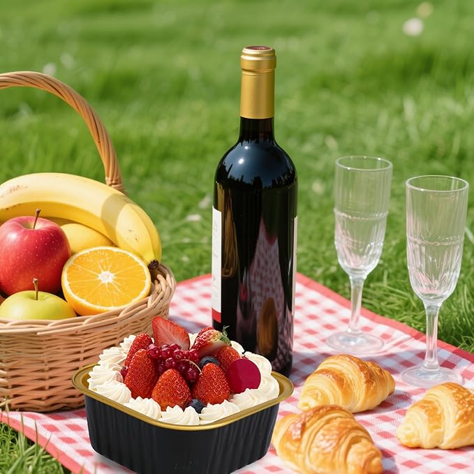 - Multi-functional use scenarios - These mini dessert cups with lids are not only suitable for baking cupcakes, brownies and cheesecakes, but also for fruits, salads and other foods. The square design of thmini cheesecake pans is beautiful and generous. Whether it is a family gathering, a wedding dessert table or commercial baking, these mini cake pans with lids and spoons are perfect. The food-grade material of the aluminum cups with lids ensures safety and hygiene
